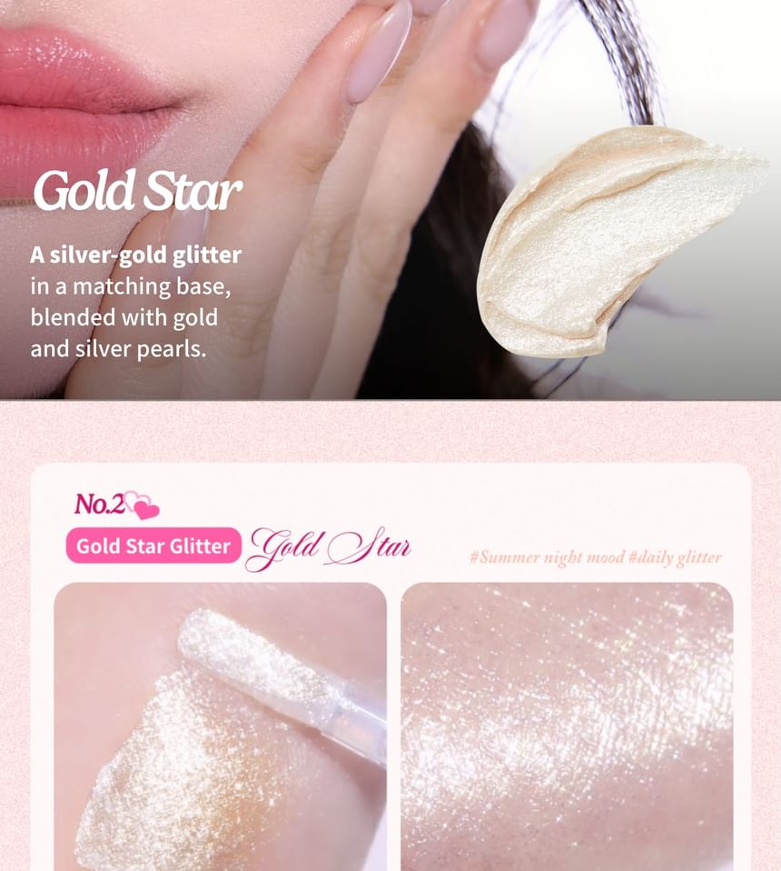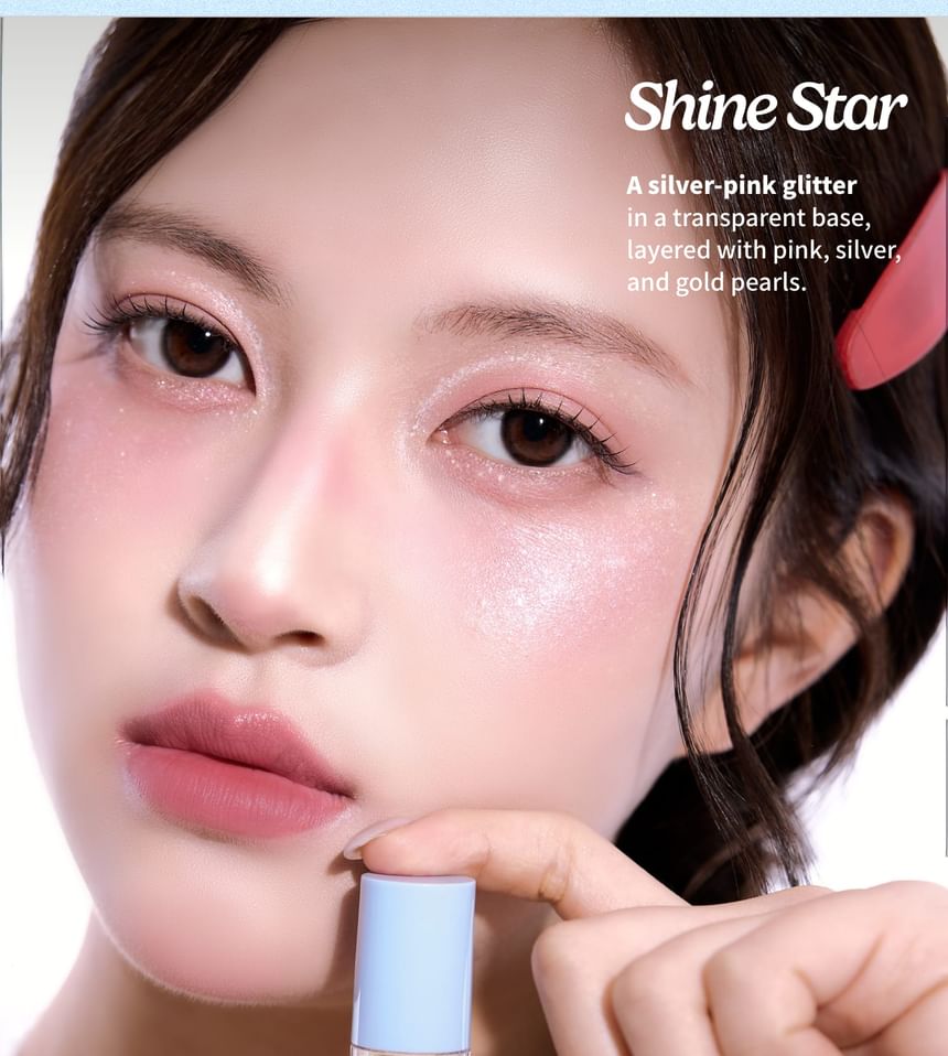 01 Shine Star – Clear base infused with pink, silver, and gold pearls for a bright, ethereal glow.