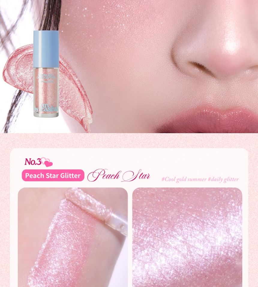 03 Peach Star – Coral-pink glitter with a soft pearl base for a fresh, romantic shimmer.