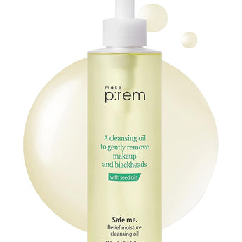 MAKE P:REM Safe Me. Relief Moisture Cleansing Oil is a fabulous Korean oli cleanser perfect to removing makeup, impurities, and blackheads! Formulated with natural seed oils, this gentle cleansing oil melts away makeup residue, blackheads, and sebum, leaving your skin feeling clean, refreshed, and moisturized.
