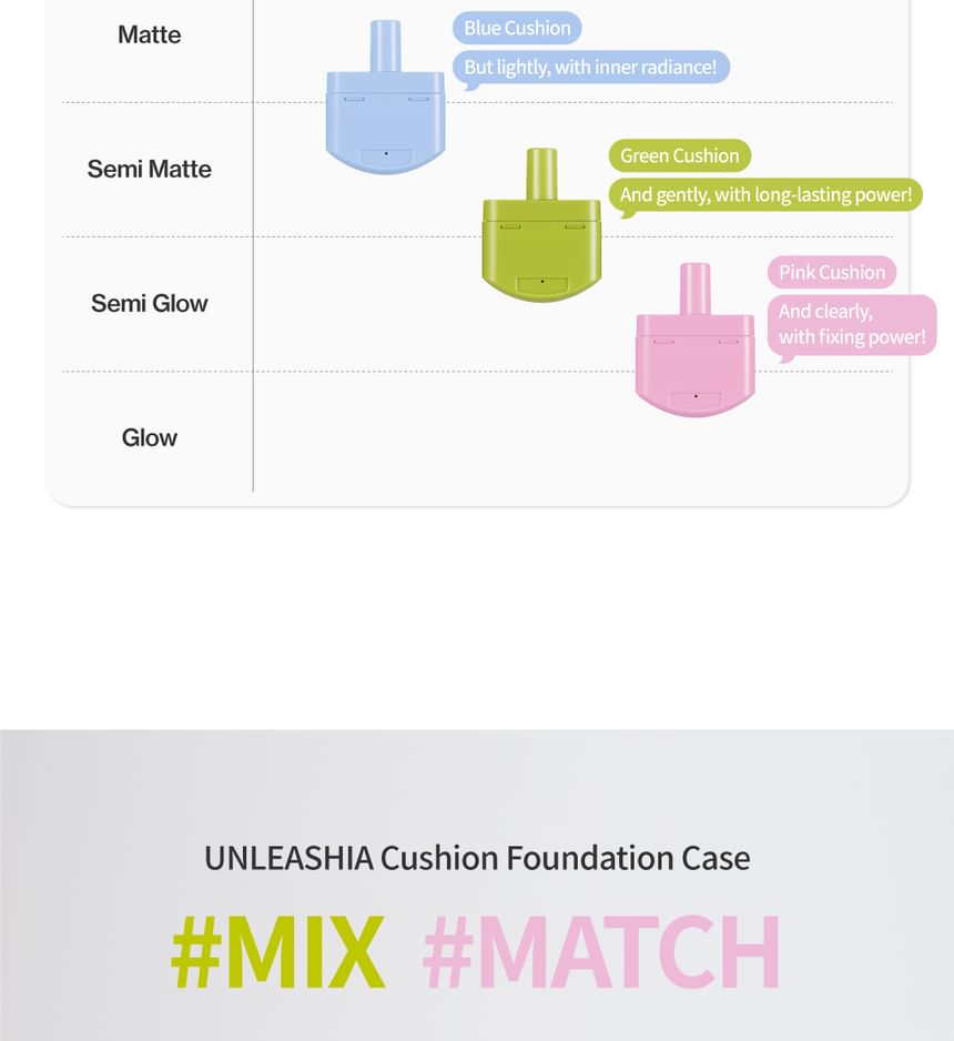 A designated case for the 3 UNLEASHIA cushion foundations. All 3 UNLEASHIA cushion refills are compatible the case. Easy application that enables quick and effortless refills.