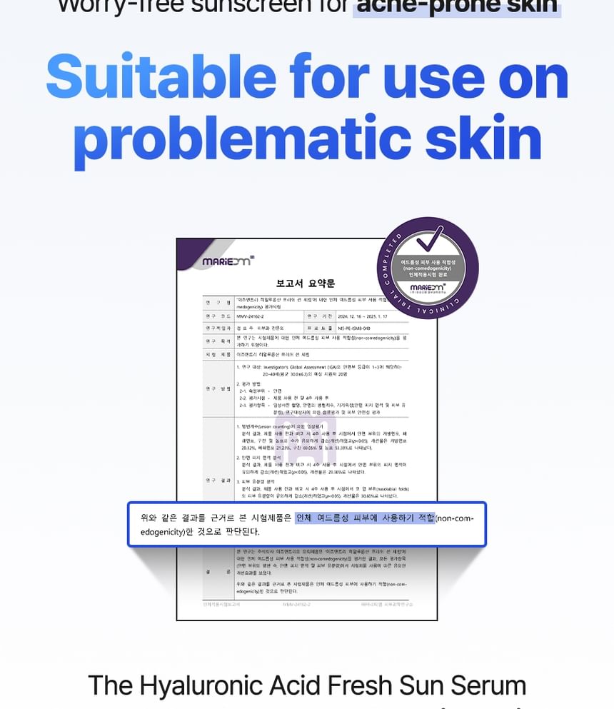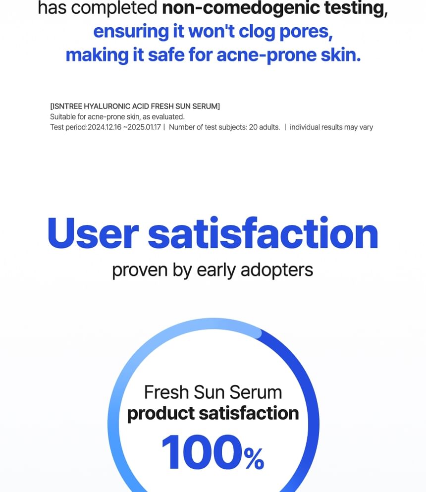 Acne-prone skin test completed that pores will not be blocked after use and safe to use for acne-prone skin.