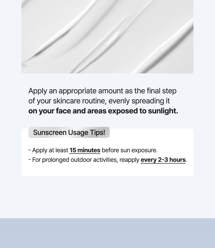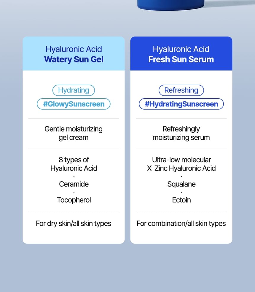 Water, Homosalate, Butyloctyl Salicylate, Ethylhexyl Salicylate, Butylene Glycol, Diethylhexyl 2,6-Naphthalate, Butyl Methoxydibenzoylmethane, Niacinamide, C20-22 Alkyl Phosphate, C20-22 Alcohols, 1,2-Hexanediol, Acrylates Copolymer, Pentylene Glycol, Polymethylsilsesquioxane, Centella Asiatica Extract, Portulaca Oleracea Extract, Houttuynia Cordata Extract, Nymphaea Alba Flower Extract, Sodium Hyaluronate, Cetyl Alcohol, Poly C10-30 Alkyl Acrylate, Glyceryl Stearate, Vp/Eicosene Copolymer, Silica, Tromethamine, Polyacrylate Crosspolymer-6, Propanediol, Ethylhexylglycerin, Xanthan Gum, Adenosine, Dimethylsilanol Hyaluronate, Hydrolyzed Sodium Hyaluronate, Hydrolyzed Hyaluronic Acid, Potassium Hyaluronate, Hyaluronic Acid, Sodium Hyaluronate Crosspolymer, Hydroxypropyltrimonium Hyaluronate, Sodium Hyaluronate Dimethylsilanol, Sodium Acetylated Hyaluronate, Ectoin, Tocopherol, Beta-Glucan, Dipropylene Glycol, Sodium Palmitoyl Proline, Glycerin