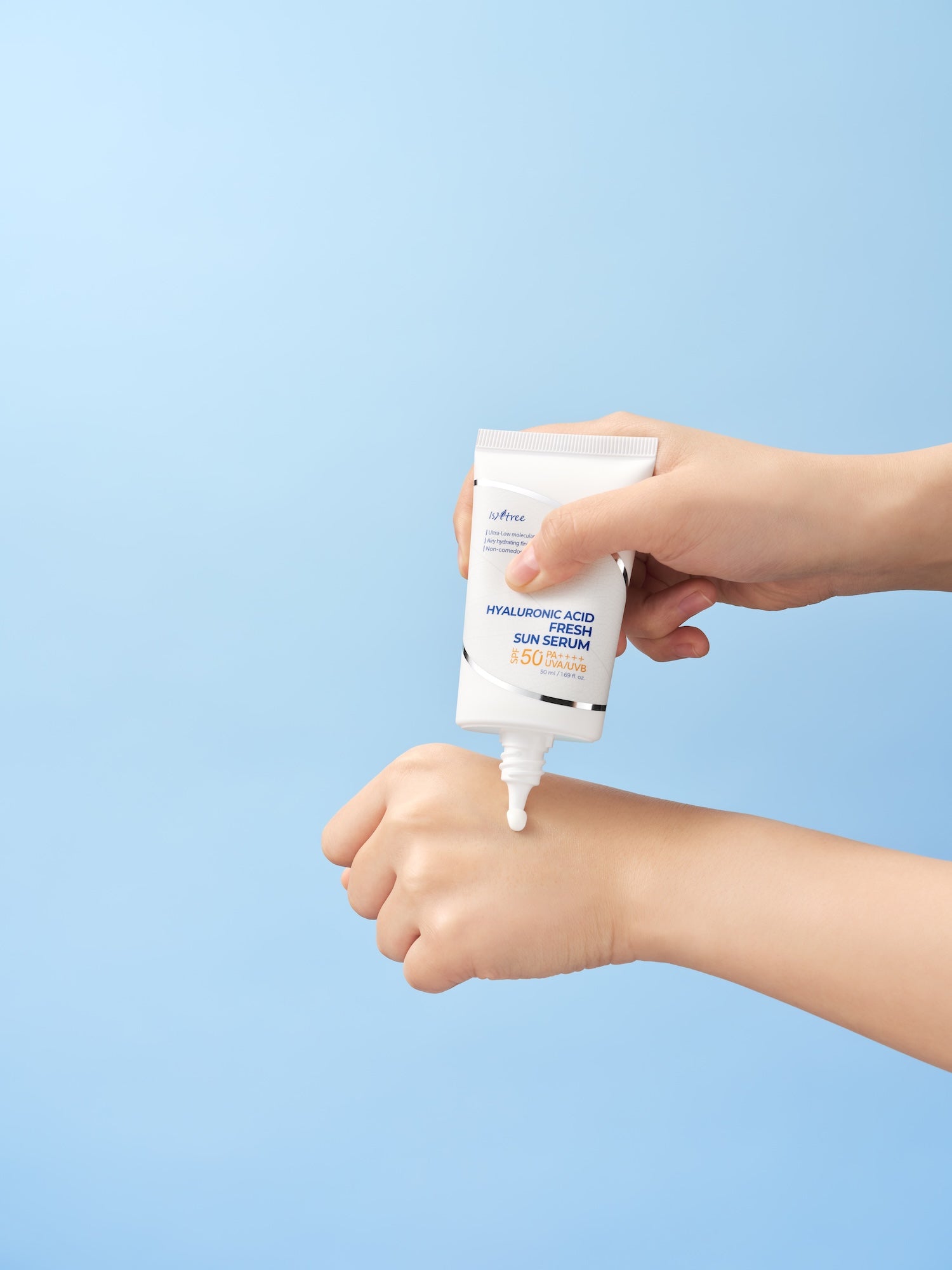 A feather-light sun serum with ultra-low molecular hyaluronic acid for non-greasy and refreshing UV protection.