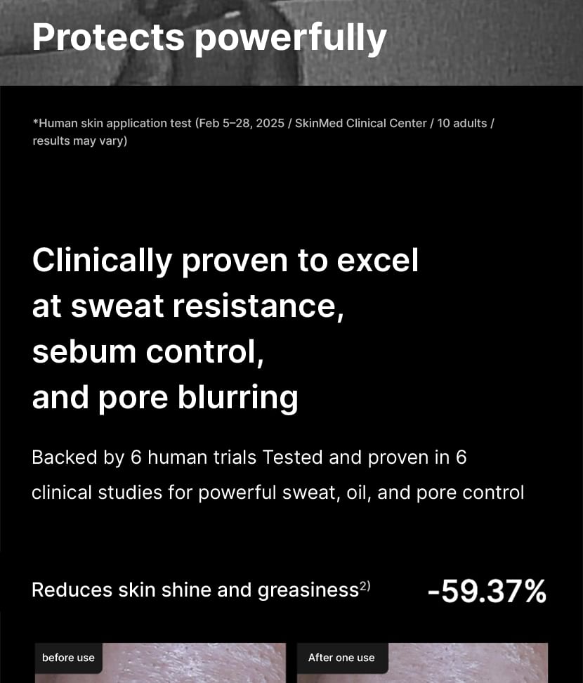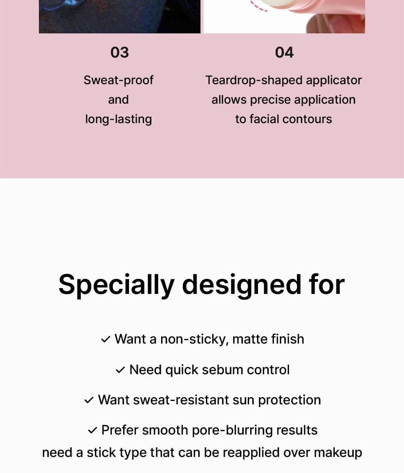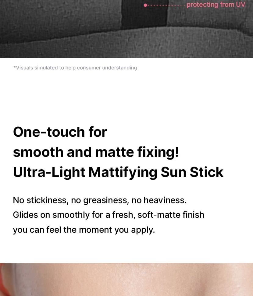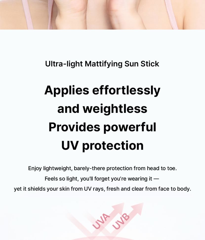 Lightweight matte oil-control sun stick that sets without stickiness and stays put even with sweat.