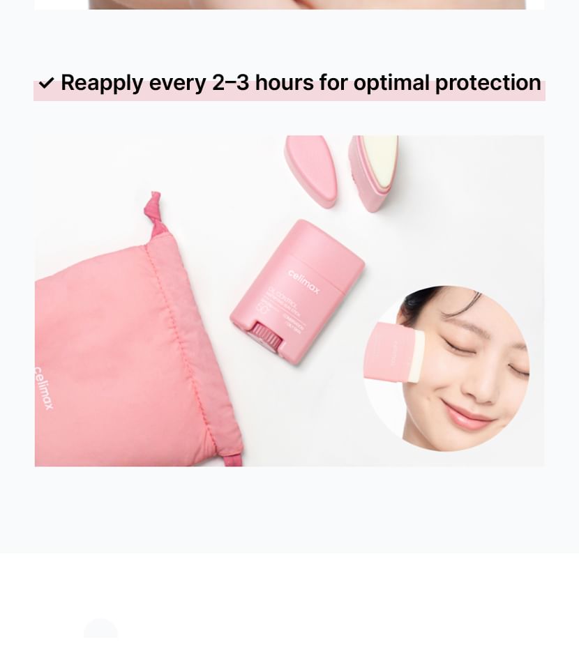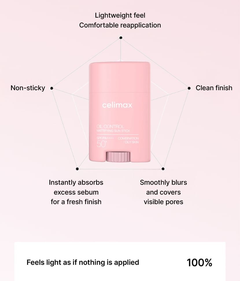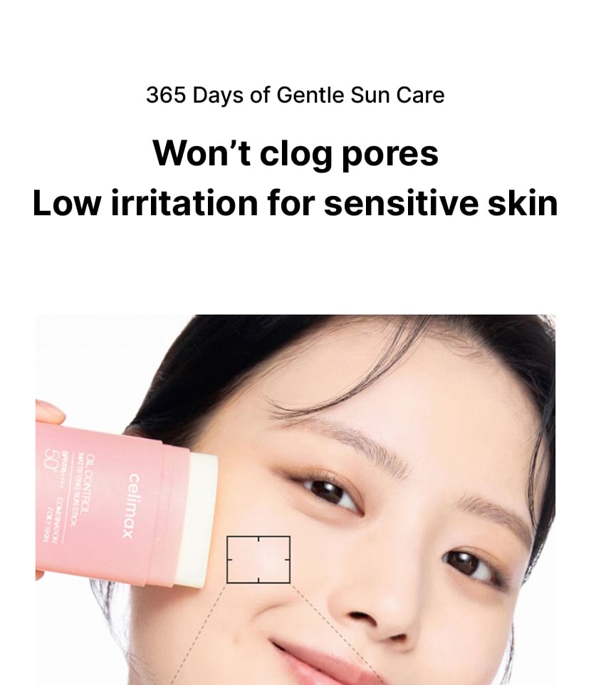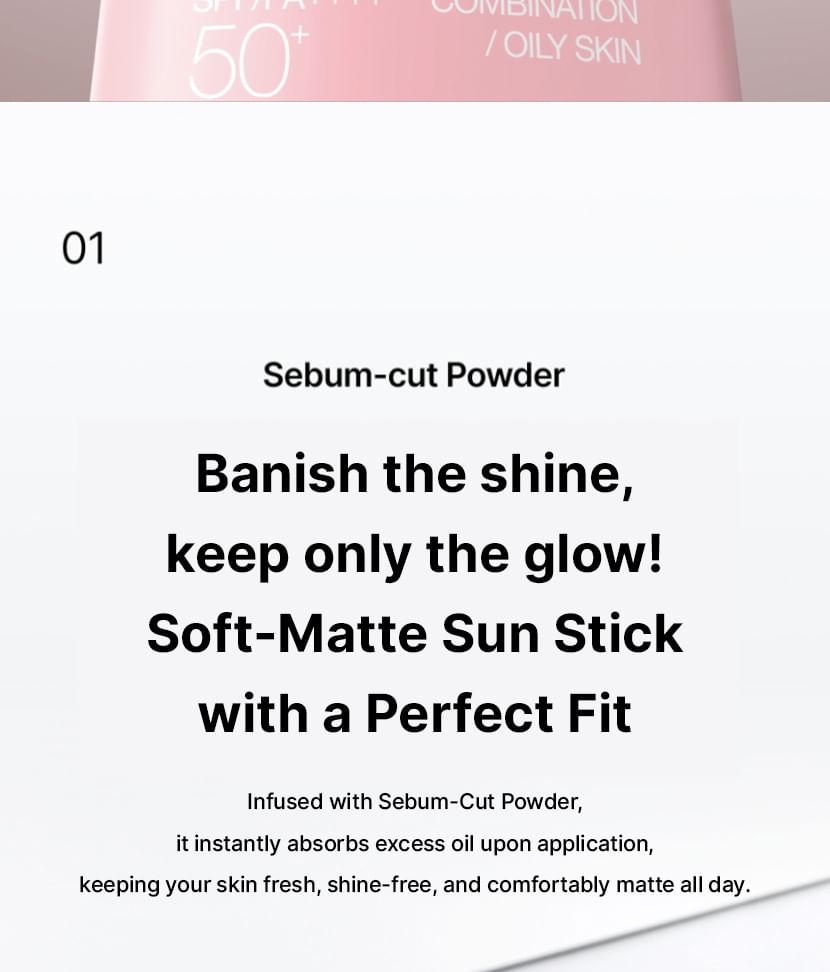 A sun stick allows sebum control and offers effective UV blocking with broad spectrum SPF50+ PA++++.