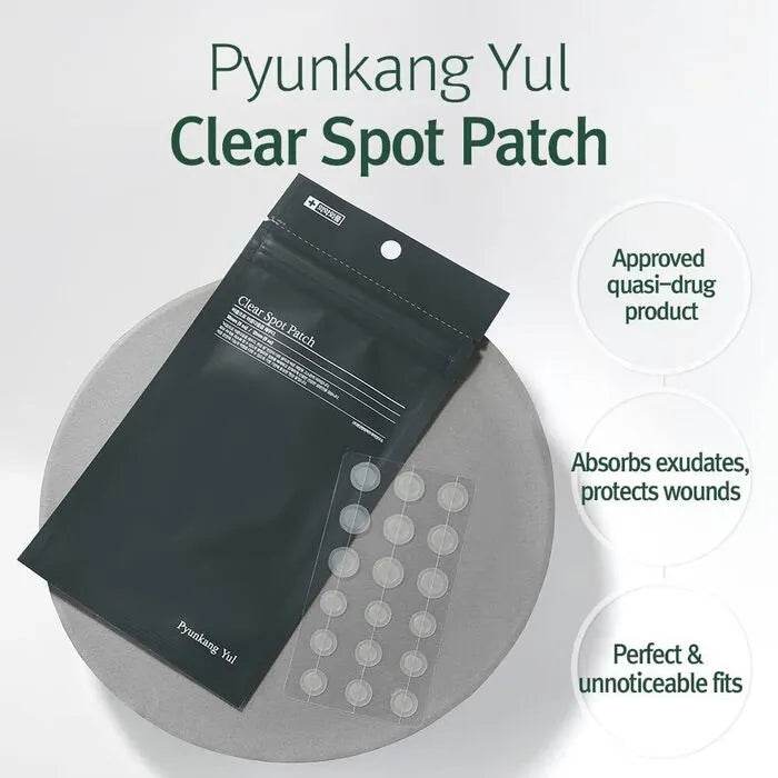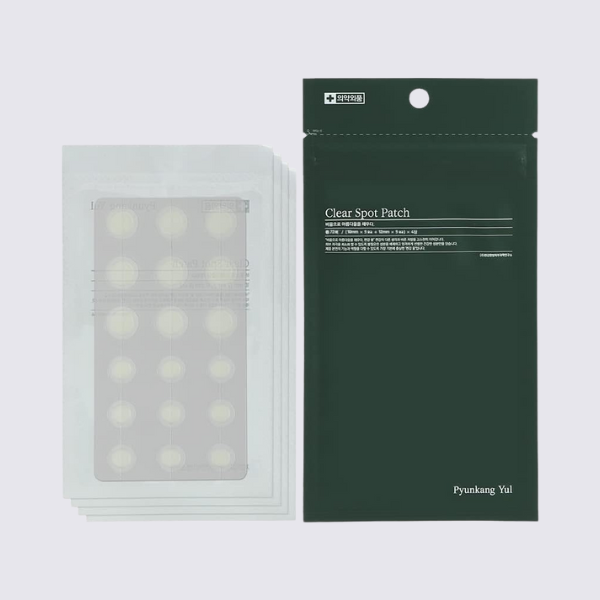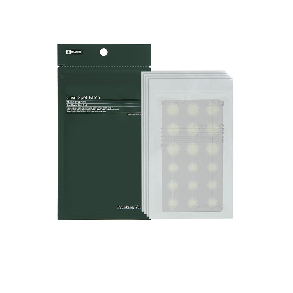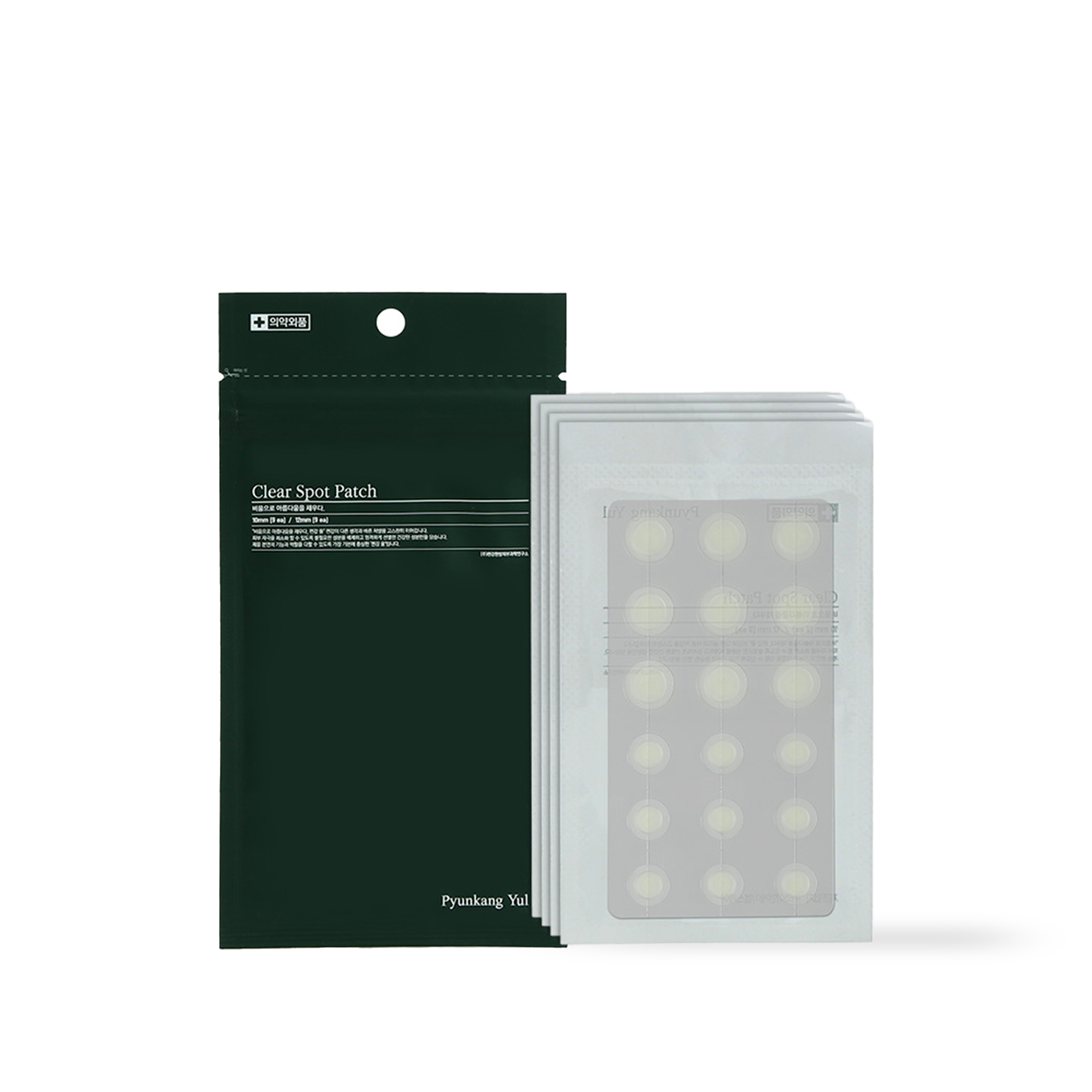 Pyunkang Yul Clear Spot Patch is a hydrocolloid-based patch certified by the Korean Ministry of Food and Drug Safety. It forms a protective barrier over wounded or irritated areas, shielding them from external pollutants and friction while creating a moist environment that supports faster skin recovery.