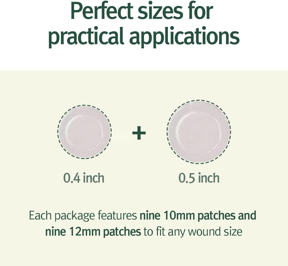 Available in two convenient sizes (10mm and 12mm) with 36 patches each — a total of 72 patches — it offers practical, hygienic spot care for various skin concerns.