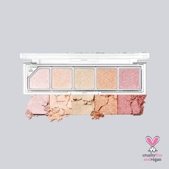 Elevate your glow with this versatile five-pan highlighter palette that doubles as eyeshadow or blush. Each shade blends luminous pearl particles with soft matte pigments for a radiant, natural finish that feels weightless on the skin. Perfect for both subtle daytime sheen and full-on evening glam, this compact palette is your go-to for effortless brilliance.
