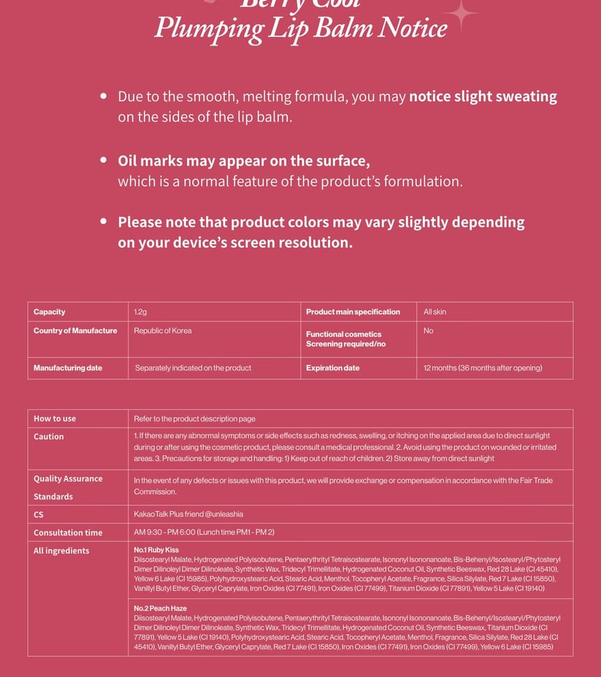 Unleashia A by Unleashia Berry Cool Plumping Lip Balm 1.2g 2 Colors