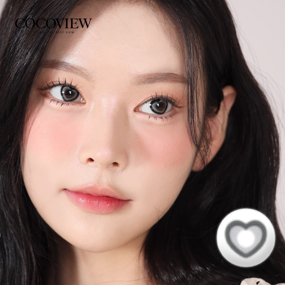 The Cocoview Heart Ruri Gray contact lenses give your eyes a stylish, modern gray glow while enhancing their size and brightness. With a 13.5mm graphic diameter and 14.5mm overall diameter, these lenses provide a noticeable enlarging effect for a chic, sophisticated look.