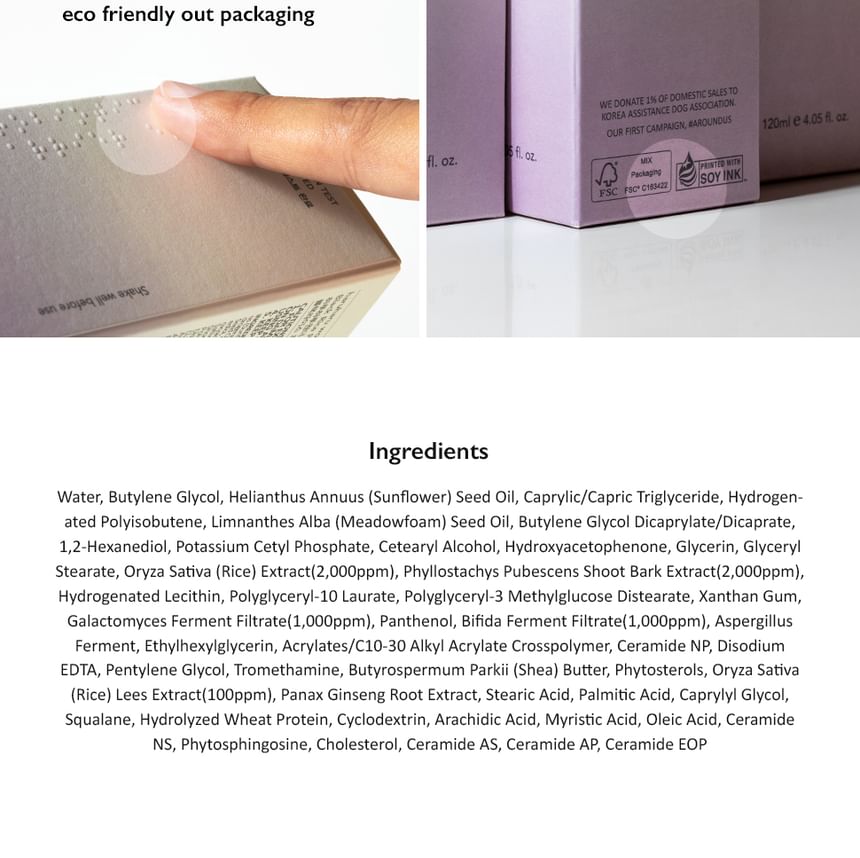 Water, Butylene Glycol, Nicotinamide Adenine Dinucleotide, 1,2-Hexanediol, Coco-Caprylate/Caprate, Potassium Cetyl Phosphate, Limnanthes Alba (Meadowfoam) Seed Oil, Galactomyces Ferment Filtrate, Hydroxyacetophenone, Glycerin, Caprylic/Capric Triglyceride, Oryza Sativa (Rice) Extract, Sodium Citrate, Squalane, Hydrogenated Polyisobutene, Phyllostachys Pubescens Shoot Bark Extract, Glyceryl Stearate, Propanediol, Panthenol, Bifida Ferment Filtrate, Aspergillus Ferment, Cetyl Alcohol, Hydrogenated Lecithin, Ethylhexylglycerin, Polyglyceryl-10 Laurate, Polyglyceryl-3 Methylglucose Distearate, Stearyl Alcohol, Disodium EDTA, Acrylates/C10-30 Alkyl Acrylate Crosspolymer, Oryza Sativa (Rice) Lees Extract, Panax Ginseng Root Extract, Myristyl Alcohol, Lauryl Alcohol, Ceramide NP, Cetearyl Alcohol, Stearic Acid, Cyclodextrin, Ceramide NS, Phytosphingosine, Cholesterol, Ceramide AS, Ceramide AP, Ceramide EOP