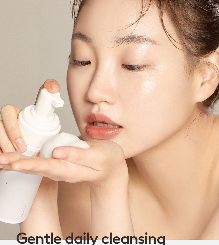 • Hyggee All-In-One Care Cleansing Foam is a low pH, ultra-fine bubble mousse cleanser that deeply purifies while maintaining the skin’s moisture balance. Infused with birch sap, probiotics, and white asparagus extract, it gently cleanses without stripping the skin.