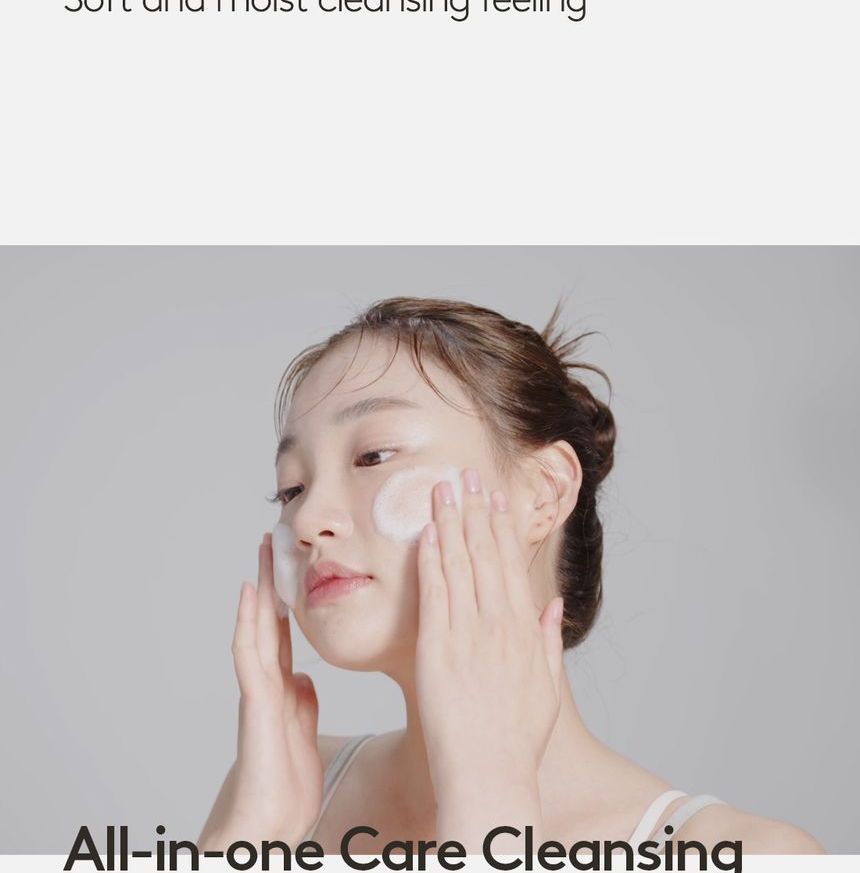 • Hyggee All-In-One Care Cleansing Foam provides a luxurious, irritation-free cleansing experience with its ultra-fine bubble mousse formula. The soft, dense foam deeply cleanses pores without the need for harsh rubbing, minimizing friction and irritation. Birch sap, rich in minerals and amino acids, hydrates and nourishes the skin while preventing post-cleansing dryness. White asparagus extract helps purify and refresh, while probiotics support a healthy skin barrier by delivering essential nutrients and forming a protective moisture film.