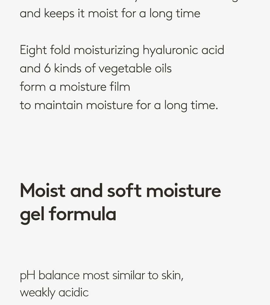 Infused with eight types of hyaluronic acid to form a moisture barrier on the skin.