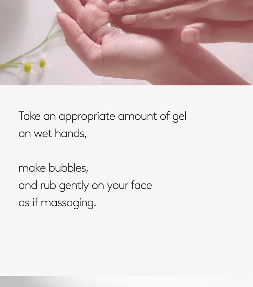 1. Apply a moderate amount of the cleanser to the wet face and massage in circular motions until lather comes up.