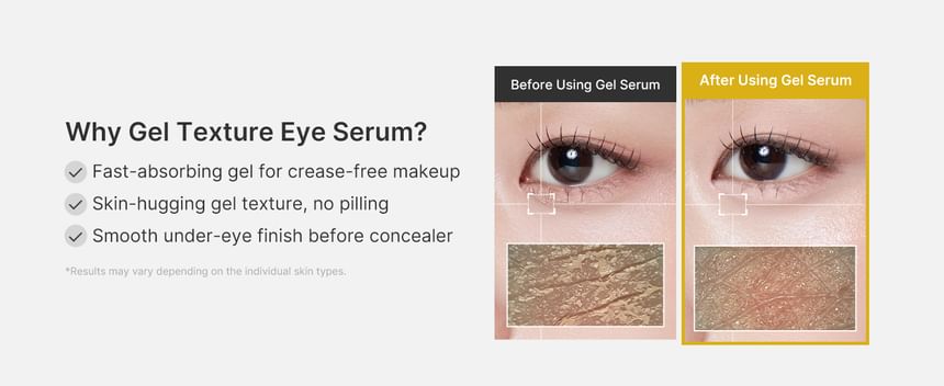 Lightweight, non-sticky gel texture hugs every corner of the eye area, forming a breathable layer that helps lock in key ingredients for deeper, longer-lasting results, leaving skin radiant and silky smooth.