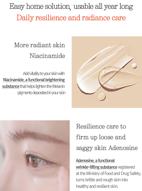 Niacinamide works to visibly reduce pigmentation caused by melanin accumulation, while Adenosine reinforces elasticity and smooths fine lines for a firmer, more even texture. Clinically tested for brightening and wrinkle improvement, this dual-functional toner provides gentle yet effective daily care that brightens, hydrates, and revitalizes the skin.