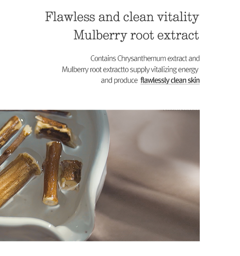 For centuries in traditional Korean herbal medicine, Morus Alba Root (the root of the mulberry tree)—cherished as a precious ingredient for restoring clarity and vitality—has been used to revive dull, tired skin.